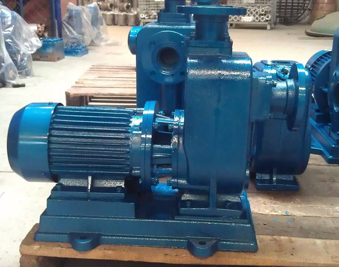 自吸泵的工作原理是:水泵启动前先在泵壳内灌满水(或泵壳内自身存有水)。启动后叶轮高速旋转使叶轮槽道中的水流向涡壳,这时入口形成真空,使进水逆止门打开,吸入管内的空气进入泵内,并经叶轮槽道到达外缘。自吸泵属自吸式离心泵,它具有结构紧凑、操作方便、运行平稳、维护容易、效率高、寿命长,并有较强的自吸能力等优点。管路不需安装底阀,工作前只需保证泵体内储有定量引液即可。不同液体可采用不同材质自吸泵。
